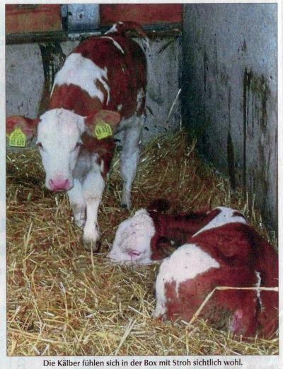 Gefüttert werden neben Heu als Kraftfutter Rapsschrot, Getreideschrot sowie Mineralfutter und Salz. Für trocken gestellte Kühe gibt es einen extra abgeteilten Bereich, sie bekommen weniger angereichertes Futter. Die Fütterung wird per Computer geregelt. Jede Kuh ist mit einer Nummer registriert und trägt an ihrem Vorderbein einen Minicomputer, der alle Daten wie Milchmenge und Kraftfutterbedarf speichert. So kann die Futtermenge effektiv zugeteilt werden und der Landwirt behält immer den Überblick. Drei Jungviecher dürfen bei den Grafs übrigens den Sommer über auf die Weide an der Höllmühle im Perlbachtal.