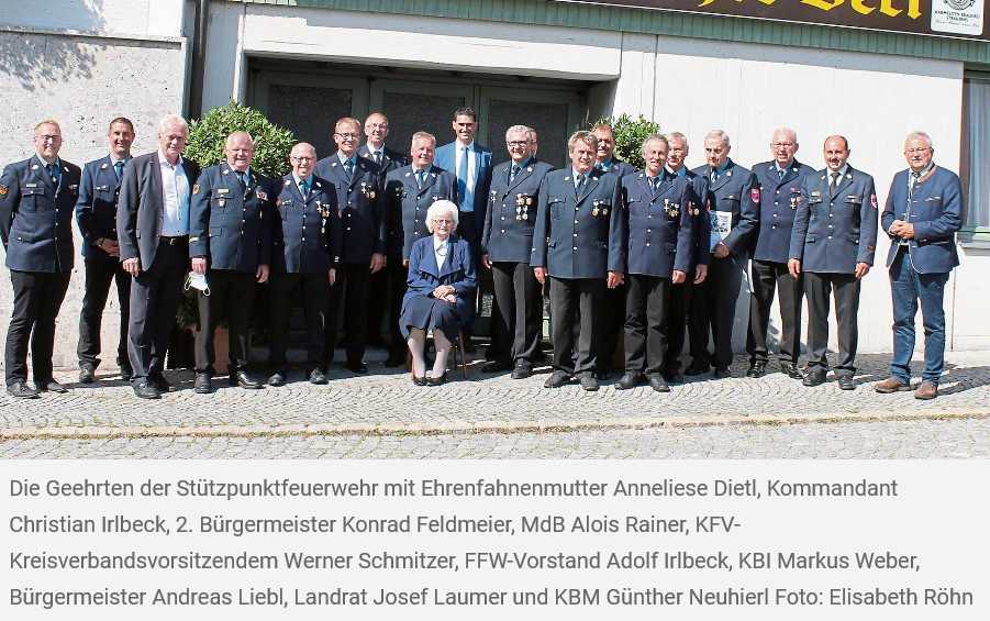 Als besondere Auszeichnung des KFV wurde Ehrenfahnenmutter Anneliese Dietl mit dem Ehrenzeichen in Gold am Bande geehrt. Sie war Fahnenmutter 1967 beim 100. und 1992 beim 125. Gründungsfest, ist seit 24 Jahren Ehrenfahnenmutter, stiftete beim 150. Gründungsfest ein Ehrenband und unterstützt die Feuerwehr bis heute mit Geld- und Sachspenden.